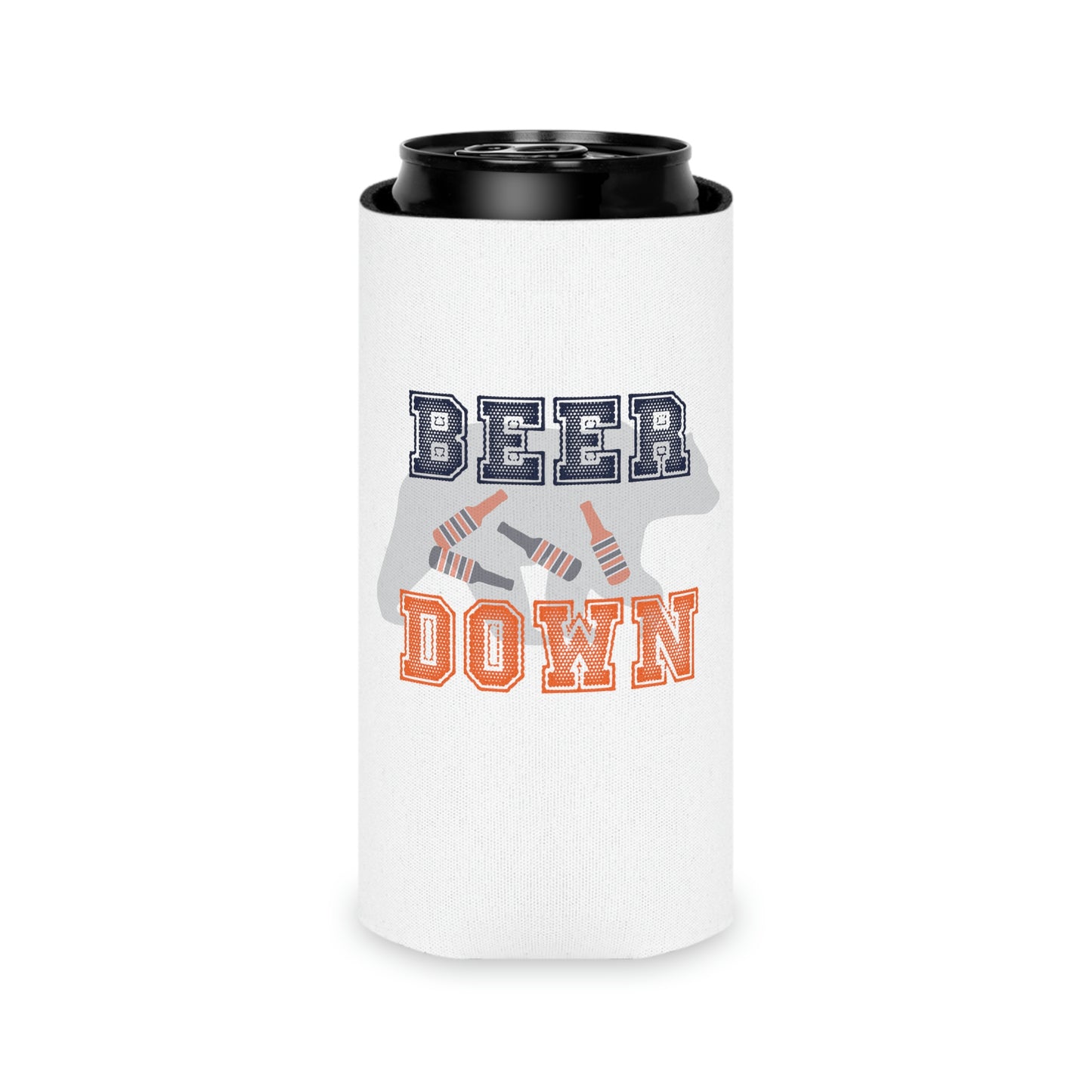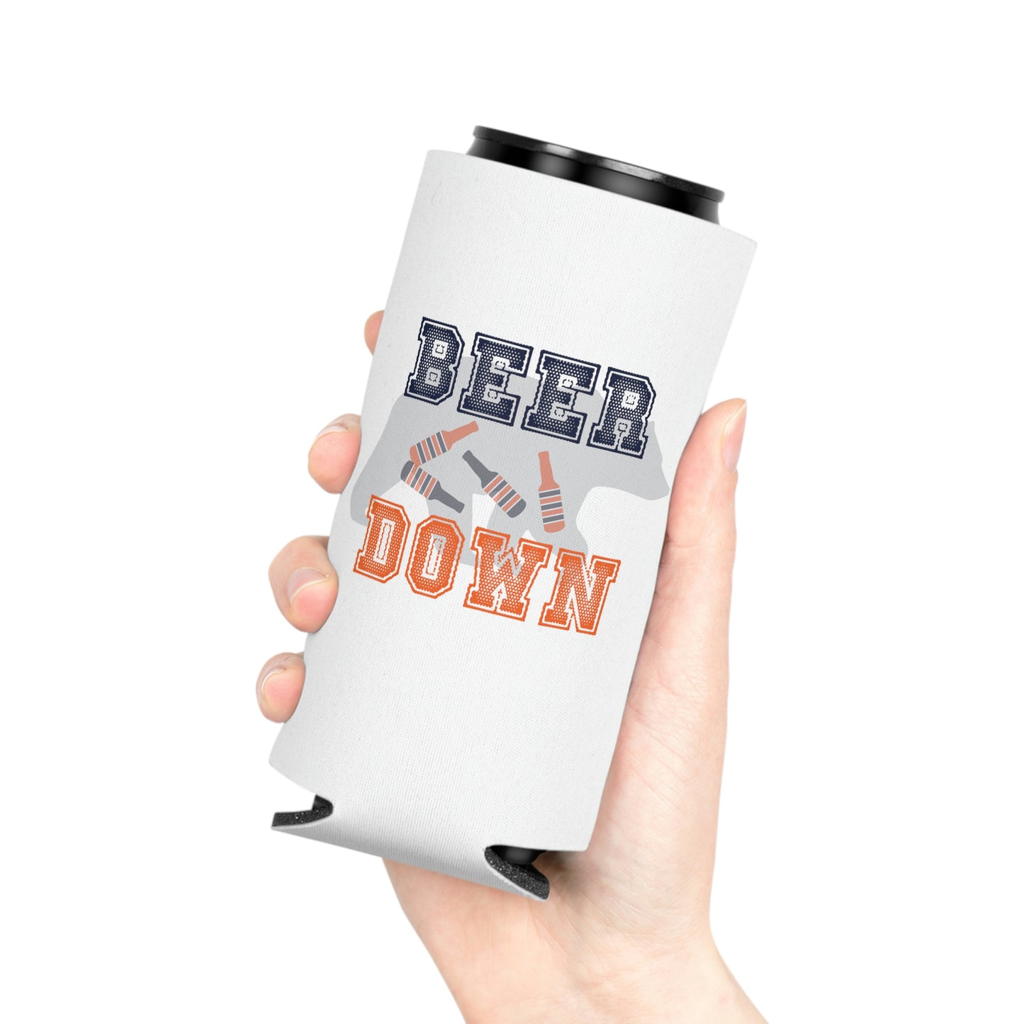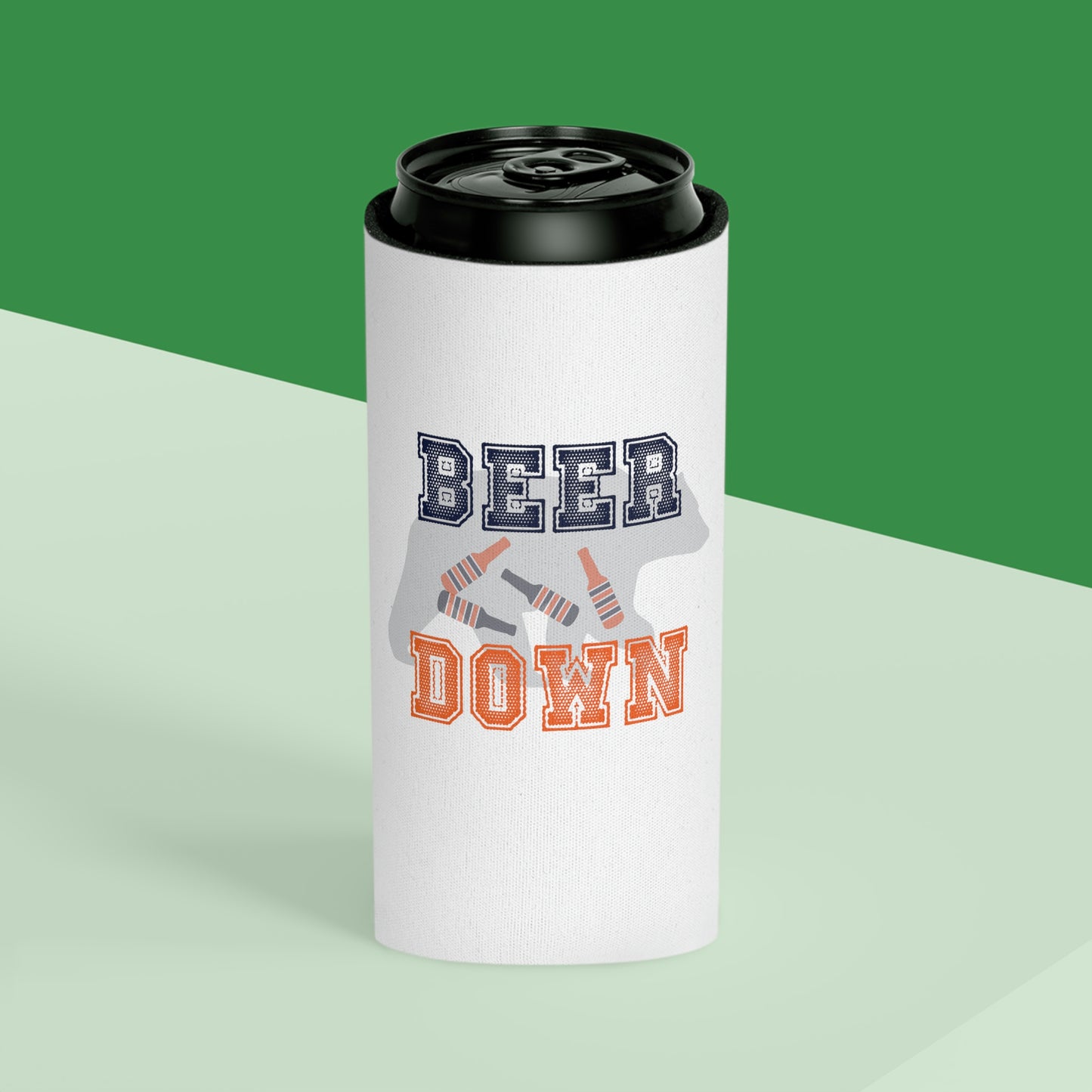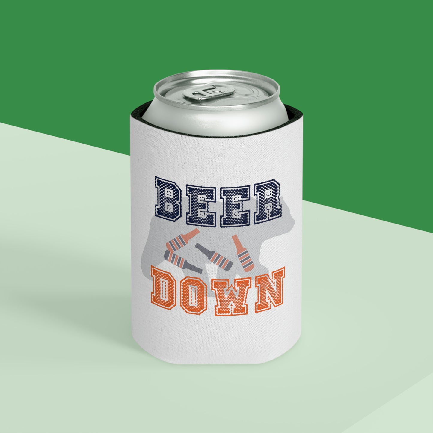 The Koozie features the Beer Down design on one side and our Suburban Dad Tees logo on the other.