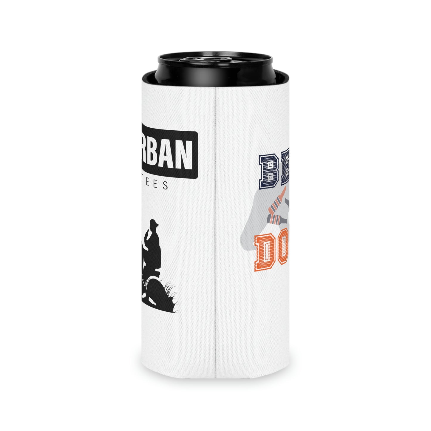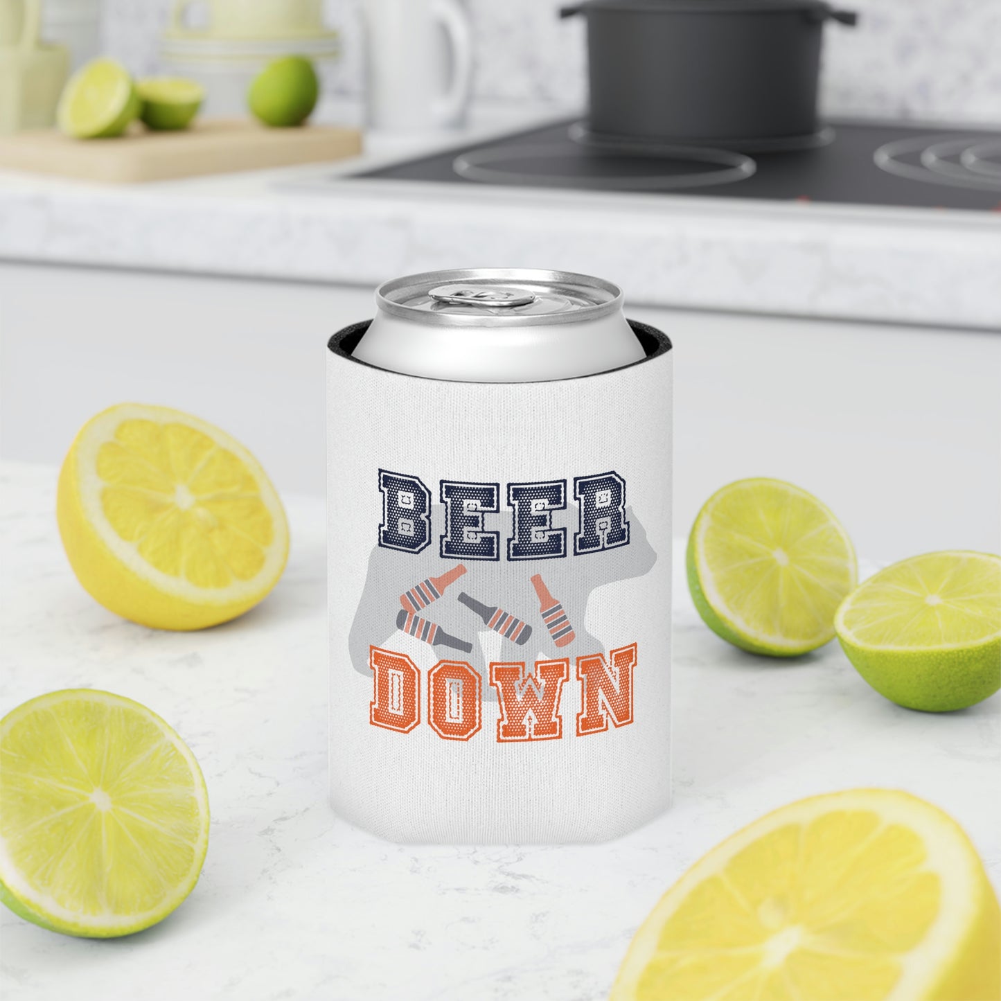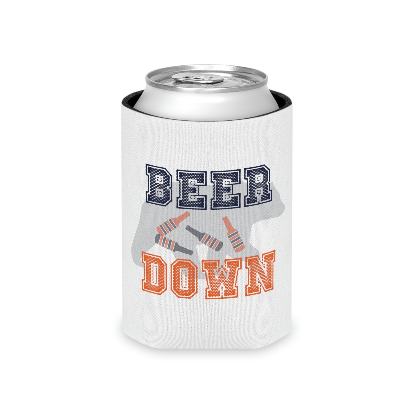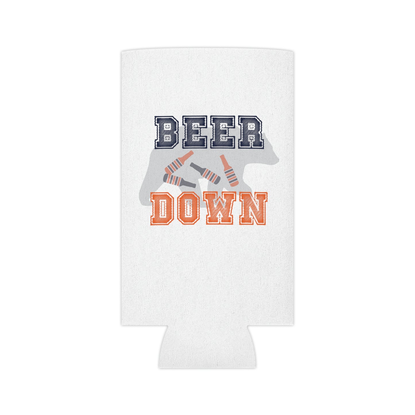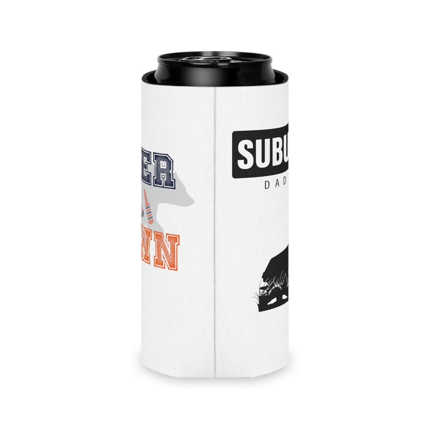 The Koozie features the Beer Down design on one side and our Suburban Dad Tees logo on the other.